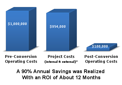 The complete migration resulted in a realized savings of $900,000 annually, with an ROI of about 12 months.